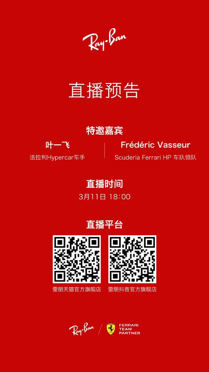 The broadcast, which kicked off at 6:00 PM on both Douyin (China’s TikTok) and Tmall, featured real-time audience interaction, product showcases, and shoppable segments — all with two of Ferrari’s most prominent figures at the center. The timing was deliberate: the 2026 F1 Chinese Grand Prix was just days away (March 13–15), and Ray-Ban, as an official Ferrari team partner, had transformed the store into a “Red Racing Arena” pop-up to build pre-race buzz.