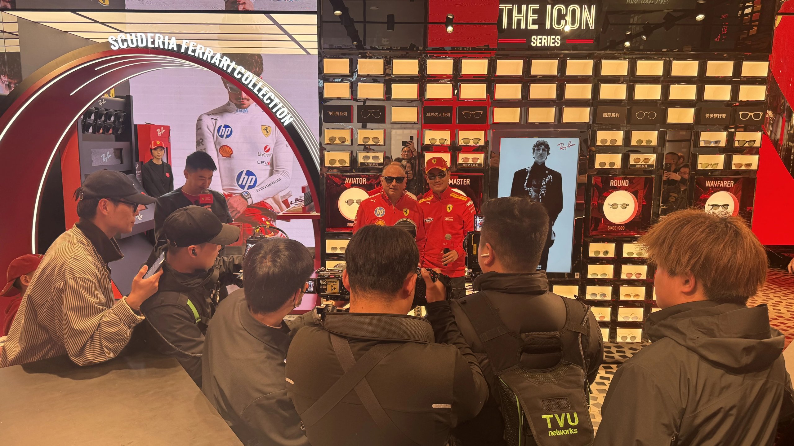 Ferrari Team Principal Frédéric Vasseur joined a live-commerce broadcast from Ray-Ban's Shanghai flagship store days before the 2026 F1 Chinese Grand Prix, with TVU One backpacks ensuring a seamless multi-platform stream in a technically challenging urban environment.